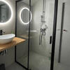 Очень достойная дверца. Визуально красивая. Ничто не люфтит, не поцарапано. Регулируемая ширина - вошла в нишу как влитая. Единственное, хотелось бы побольше толщину стёкол.